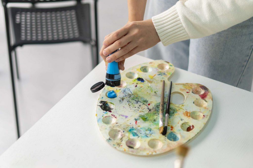 Students gain practical skills through structured modules that guide them from basic brush handling to complete acrylic artworks.